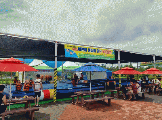어린이 물놀이장에는 유아 및 소아용 대형풀장을 비롯하여 대형 그늘막, 무더위쉼터, 탈의실 등 편의시설을 운영한다.