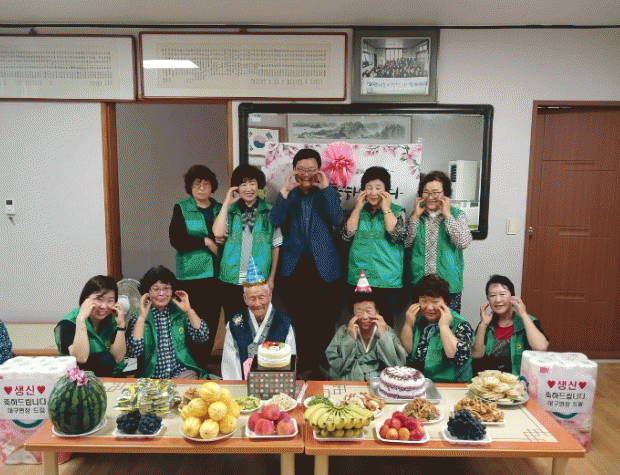 이번 행사는 10여 명의 회원들이 케이크, 떡, 나물 등 정성스럽게 음식 준비를 하고, 축하 노래를 부르는 등 따뜻한 마음을 나누기 위해 생신상을 차려드렸다.
