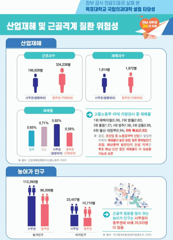 1990년부터 34년간 국립 의과대학과 대학병원 설립을 끊임없이 정부에 요구했으며, 정부가 진행한 2019년 목포대학교 의과대학 설립 타당성 조사 용역 결과도 국립목포대 의과대학 신설의 당위성을 뒷받침한다.