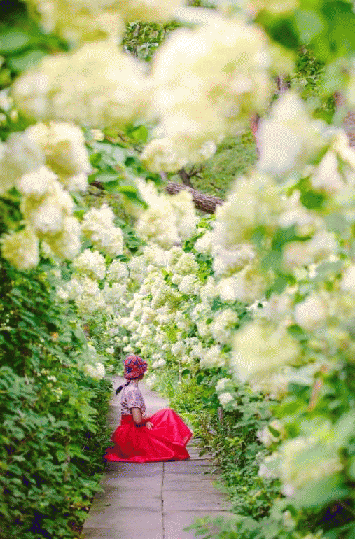 정원에 핀 수많은 하얀 수국들은 마치 커다란 아이스크림 같은 모양을 하고 있어 동화 속 같은 이국적인 풍경을 자아낸다.