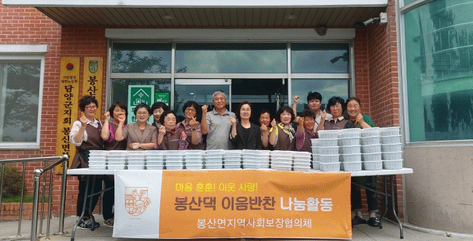 봉산면 민관협력 특화사업으로 매월 진행되고 있는 ‘봉산댁 이음반찬’ 나눔 활동은 담양애꽃 박영아 대표가 기탁한 후원금으로 관내 어려운 이웃을 위해 밑반찬 나눔봉사를 진행하고 있다.