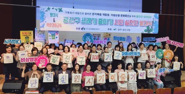 광산시민 100여 명이 참여한 ‘쓰레기 줄이기 시민실천단’은 100일 동안 쓰레기 줄이기 환경캠페인을 실시할 예정이다. 또한 각 가정에서 나오는 쓰레기 양을 측정해 이를 효과적으로 줄이는 방법도 공유할 계획이다.