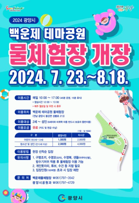 백운제 물 체험장 관련 궁금한 사항은 광양시청 공원과로 문의하면 된다.