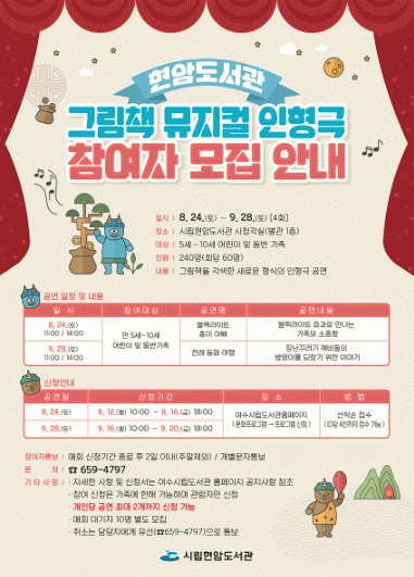 시 관계자는 “어린이에게 친숙한 그림책을 인형극으로 구현했다”며 “독서문화 확산과 도서관 이용 활성화를 위해 앞으로도 다양한 프로그램을 마련하겠다”고 밝혔다.