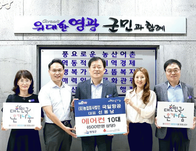 국일항공은 항공방제, 드론 교육, 드론 항공촬영 등 드론 관련 다양한 사업을 운영하는 기업으로 이번 에어컨 기탁뿐만 아니라, 2020년 7월 영광곳간 착한가게 145호점(호남국제드론사관학교) 가입을 시작으로 2021년 200만 원, 2022년 300만 원, 2023년 에어컨 10대를 기탁하는 등 매년 기부 활동을 펼치고 있다.