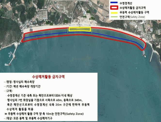 이번 개정은 관내 신지 명사십리 해수욕장을 대상으로 해수욕장 개장기간 (7.13. 부터 8.18.) 중 무동력 수상레저기구를 이용한 레저활동을 보다 안전하게 즐길 수 있도록 기존 무동력 수상레저활동 허용 구간 200m(명사십리 7번 화장실을 기점으로 해조류 스파랜드 방향 200m)에서 400m(명사십리 7번 화장실을 기점으로 서쪽으로 60m, 동쪽으로 340m)로 확대했다.
