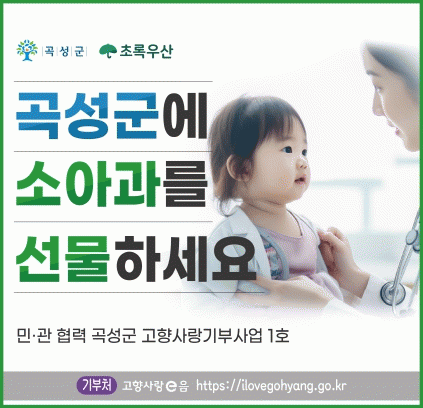 곡성군은 지난 1년여 동안 지역 내 아이들의 소아의료체계 개선을 위해 고향사랑기부제 ‘곡성에 소아과를 선물하세요’지정기부 사업을 추진해 오고 있다.
