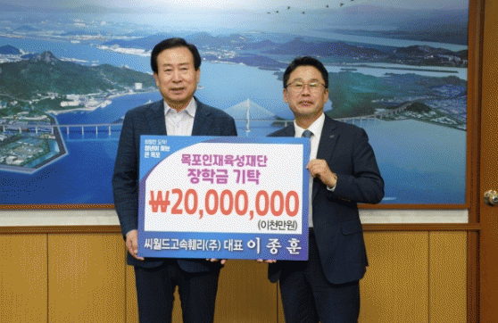 박홍률 목포시장은 “지역 사회 인재 육성을 위해 뜻깊은 기부를 해주신 ㈜씨월드고속훼리 이종훈 대표님께 감사드리며, 사회 공헌 활동의 선한 영향력이 더욱 확산되기를 바란다”며, “기탁된 기부금은 우리 지역인재들의 교육과 미래를 지원하는 데 쓰일 수 있도록 하겠다” 고 말했다.