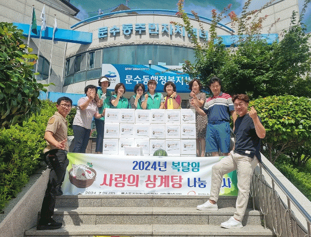 문수동 주민자치위원회와 새마을부녀회은 한화솔루션의 후원을 받아 ‘사랑의 삼계탕 나눔 행사’를 진행했다.