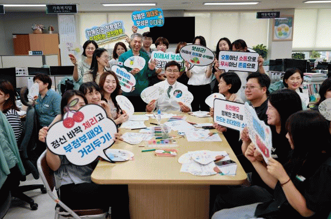 ‘나의 청렴부채 만들기’는 청렴의 바람이 부정부패와 무더위를 시원하게 날려버리기를 바라는 마음을 담아 기획됐으며, 강사 2인 1조로 구성된 3팀이 각 부서 및 읍면 행정복지센터(면사무소)를 찾아 진행됐다.