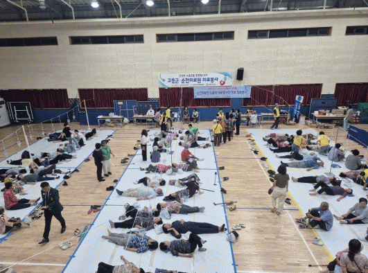 또, 동강면사무소와 지역 자율방범대, 국제라이온스 355-B3(전남 동부) 지구에서 어르신 안내 및 질서유지를 도왔고, 동강면 부녀회와 생활개선회에서는 떡, 생수 등 간식봉사 협조를 통해 안전하고 원활한 의료봉사가 진행됐다.