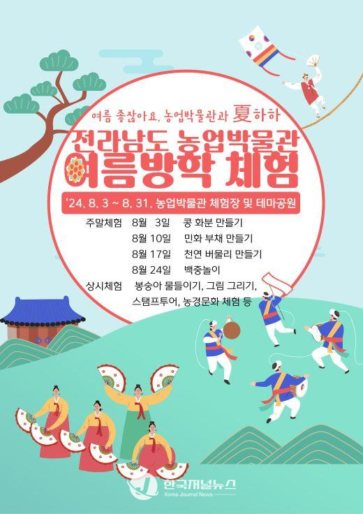 김옥경 농업박물관장은 “여름방학을 맞아 어린이와 도민이 참여할 이색 프로그램을 마련했다”며 “많은 도민이 새롭고 다채로운 체험 프로그램에 참여해 보람되고 기억에 남을만한 추억을 만들길 바란다”고 말했다.