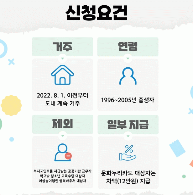 다만, 지난 3월에 신청하여 지원대상자로 확정된 청년 및 복지포인트를 지급받는 공공기관 근무자(공무원, 교사, 공무직 등), 학교 밖 청소년 교육수당 지급 대상자, 전라남도 여성농업인 행복바우처 대상자는 지원에서 제외된다.