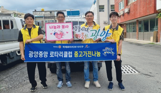 허형채 광양읍 지역사회보장협의체 민간위원장은 “광양중앙로타리클럽이 오는 10월 주거취약가구의 집수리봉사 의사를 밝힌 데 이어 이번 중고가전 나눔을 통해 공적 자원으로 지원하기 어려운 사각지대 후원에 나서주어 뜻깊다”라고 고마움을 전했다.