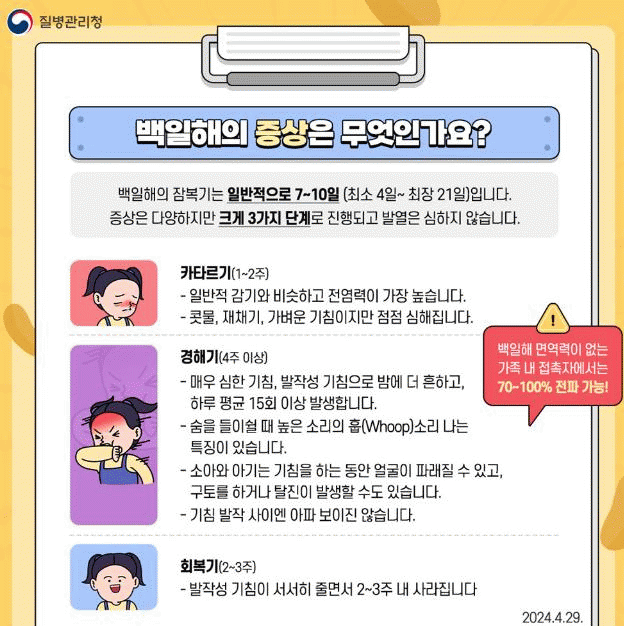또한 방학 기간 청소년의 학원 수강 및 다중이용시설 방문으로 백일해 환자 증가가 우려되는 상황이다.