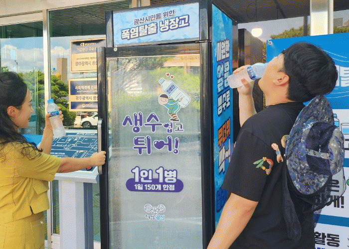 우선 1일부터 광산구청사, 동 행정복지센터 등 총 18개 소에 ‘얼음 생수 나눔 냉동고’를 설치‧운영한다. 이달까지 냉동고마다 매일 얼음 생수 150개를 채워 두고, 더위에 지친 시민이 자유롭게 꺼내어 마실 수 있도록 할 계획이다. 단, 1인당 하루 1병씩 제공한다.