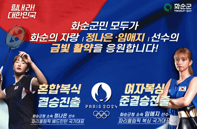 구복규 화순군수는 “정나은 선수와 임애지 선수가 파리올림픽 국가대표로 출전한 것만으로 자랑스러운데 활약까지 해 매우 기쁘다.” 라며 “선수들의 금메달 도전에 화순군민들과 함께 응원하겠다”고 밝혔다.