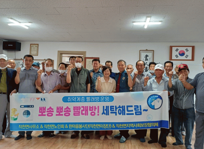 김수진 작천 면장은 "작천면 한마음 봉사단, 지역사회보장협의체 등 단체와 협약을 맺고 가정 방문해서 세탁물을 수거 배달까지 해주는 원스톱 서비스를 제공할 계획“이라며 ”수거에서 배달까지가 쉽지 않은데 봉사해 주신 단체에 감사드리며 앞으로도 각 마을 경로당 등 쾌적한 환경을 만들어 나가겠다“고 말했다.