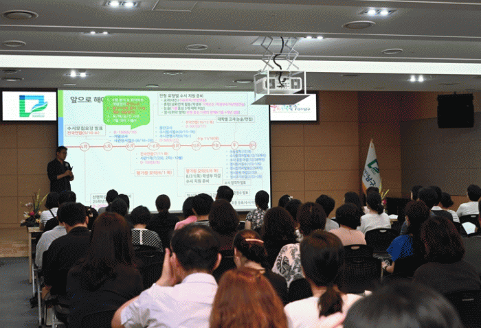 광주시교육청 진로진학지원단에 소속된 정재훈 조대여고 교사가 강단에 올라 수험생과 학부모 100명을 대상으로 90분 동안 수시 지원 전략에 관해 설명하며, 설명회가 끝난 뒤에는 20여분간 질의응답이 이어질 예정이다.