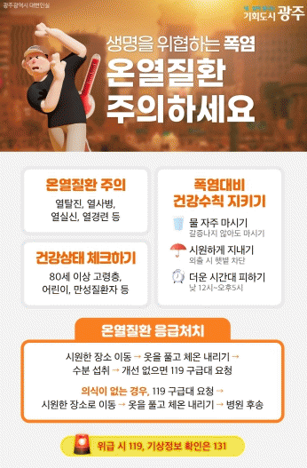 광주광역시는 지난 5월 20일부터 온열질환자를 관리하기 위해 응급실 운영 의료기관 26곳을 통해 온열질환자 발생 현황을 확인하는 ‘온열질환 응급실 감시체계’를 운영하고 있다.