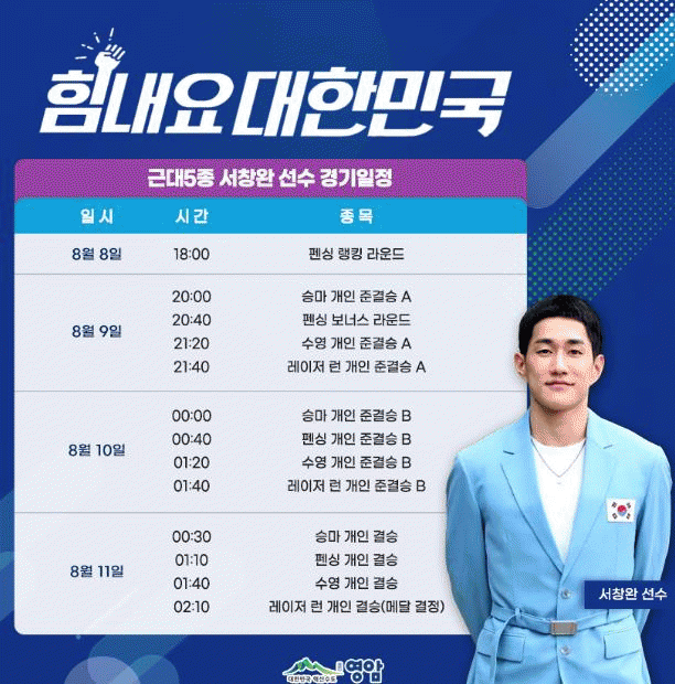 서 선수는 8일 ‘펜싱 랭킹 라운드’를 시작으로 11일까지 경기를 펼치고, 각종 방송사에서 실시간 중계가 예정돼 있다.