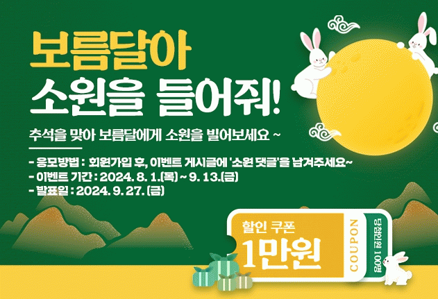 먼저, 추석맞이‘보름달아 소원을 들어줘!’댓글 이벤트를 진행한다. 이번 이벤트는 곡성몰에 가입한 뒤 추석 소원을 댓글로 남기면 추첨을 통해 이벤트 참여자 중 100명을 선정, 곡성몰 1만 원 쿠폰을 제공한다. 오는 9월 13일까지 진행되며, 9월 27일 추첨을 통해 개별 안내할 예정이다.