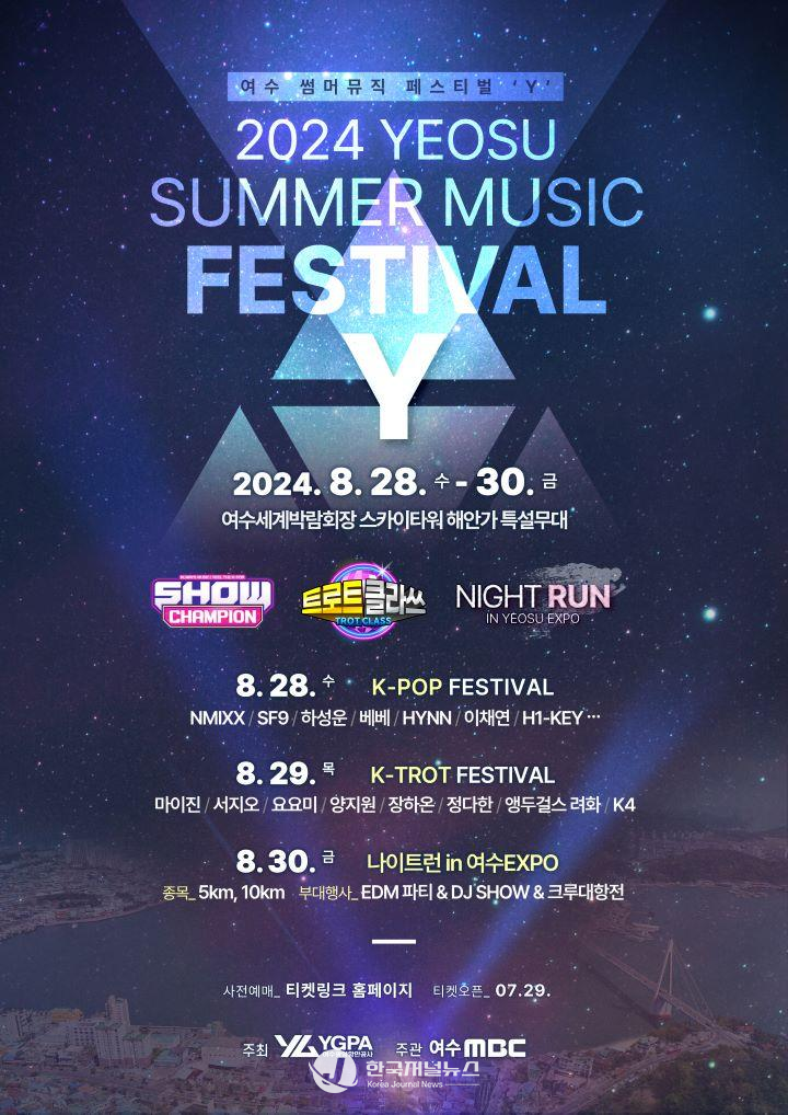 ‘썸머뮤직페스티벌 Y’ 행사는 여수광양항만공사가 주최하고, 여수MBC가 주관하며 ▲28일(수) K-POP(생방송 MBC 쇼챔피언) ▲29일(목) K-TROT(MBC 트로트클라쓰) ▲30일(금) K-SPORT(여수 나이트런 마라톤)으로 구성됐다.