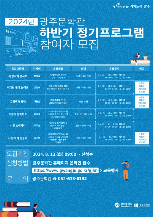 신청은 광주문학관 누리집에서 오는 13일 오전 9시부터 선착순으로 접수한다.