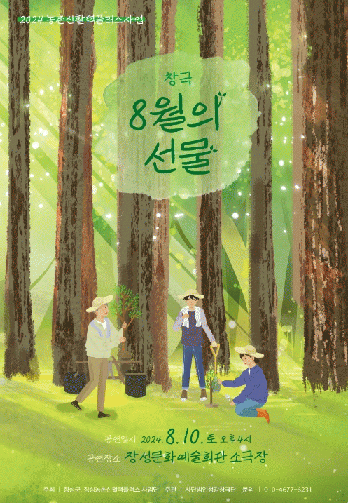 장성군 관계자는 “창작 창극 ‘8월의 선물’이 독림가 춘원 임종국 선생의 이야기와 전통문화 가치를 재조명하는 뜻깊은 계기가 되길 바란다”고 말했다.