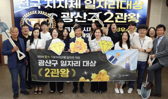 8일 서울 서초구 엘타워에서 시상식이 열린 가운데, 광산구는 올해 일자리대상 지역일자리 목표공시제, 우수사업 2개 부문에서 모두 최우수상을 받는 기염을 토했다.