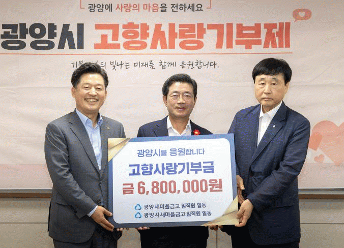 정영기 광양새마을금고 이사장과 김재숙 광양시새마을금고 이사장은 “지역에 기반을 둔 우리 지역 대표 금융기관 중 하나인 광양새마을금고와 광양시새마을금고가 지역 상생발전과 지역경제 활성화를 목표로 하는 고향사랑기부제에 함께할 수 있어 기쁘다”라며 “많은 직원이 고향사랑기부제의 취지에 동감하여 적극적으로 동참해 줬다”라고 소감을 밝혔다.