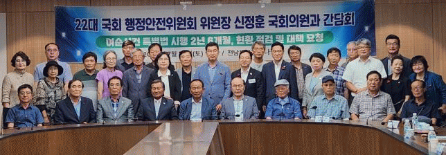 전남도 여순사건지원단은 지난 7월 27일 동부청사에서 열린 신정훈(더불어민주당 나주·화순) 국회 행정안전위원장과의 여순사건 유족·관련 단체 간담회에서 진상규명 조사와 자료 수집 및 분석 기한이 오는 10월 만료됨에 따라 기한 연장 등 여순사건특별법의 신속한 개정을 건의했다.