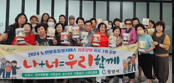 한편, 광양시 노인맞춤돌봄서비스사업은 광양시 거주 65세 이상 국민기초생활수급자, 차상위계층 또는 기초연금수급자를 대상으로 안정적인 노후 생활을 보장하기 위한 사업으로, 상반기에 진행한 사업에 이어 올해 하반기에도 분야별 지역 전문 강사의 진행을 통한 체험 활동을 하며 지속적인 만남이 진행될 수 있도록 프로그램을 계획하고 있다.