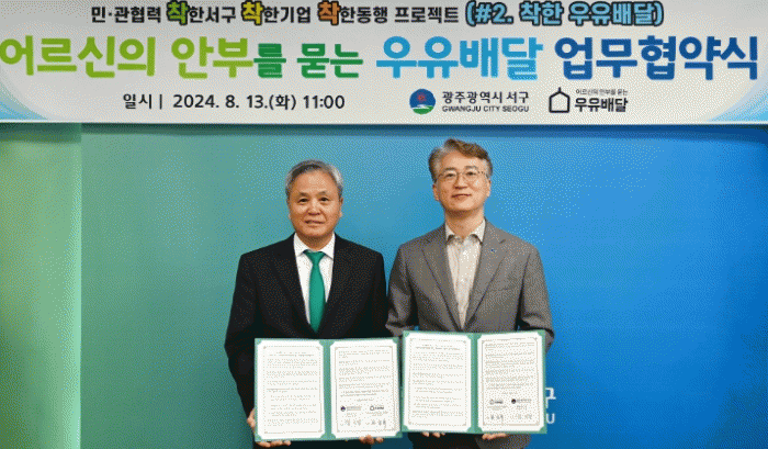 (사)어르신의 안부를 묻는 우유배달은 서구에 거주하는 취약계층 홀몸 어르신 50가구에 매주 우유 7개를 지원할 예정이다. 어르신 집에 우유가 쌓여 있거나 복지서비스가 필요하다고 판단될 경우 서구에 이를 전달하고 서구는 어르신의 건강이나 신변에 이상이 없는지 안부를 확인해 고독사를 예방할 계획이다.