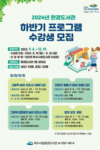 참여 희망자는 오는 8월 19일부터 26일까지 여수시립도서관 누리집을 통해 신청하면 된다.