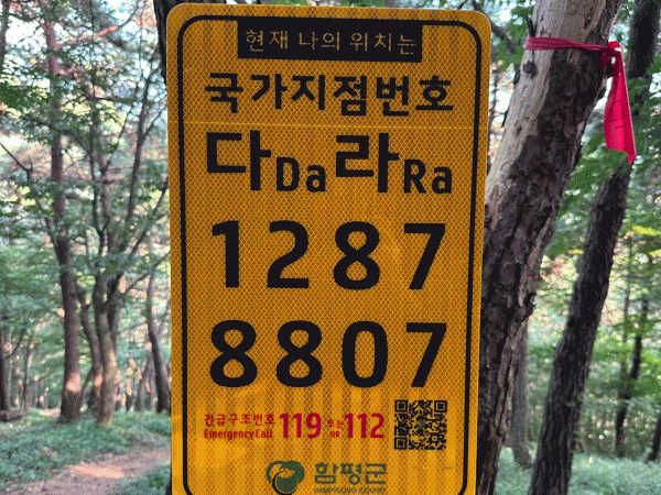 이 국가지점번호판의 위치정보는 주소정보누리집에서 확인할 수 있다.