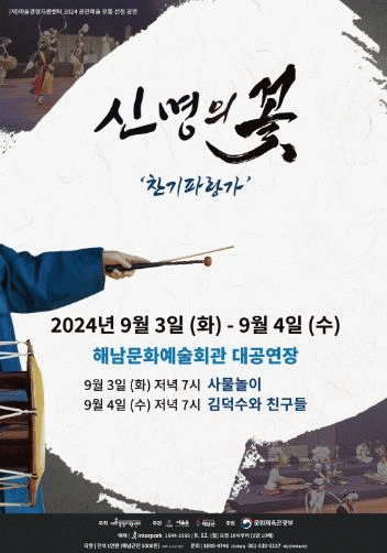 김덕수패 사물놀이와 최고의 기량을 갖춘 예인들이 참여해 다양한 악기들이 조화를 이룬 우리 음악을 선보일 예정이다.
