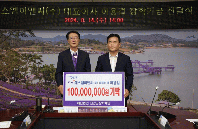 에스엠이엔씨(주) 이용걸 대표는 임자면 대기리(신명마을) 출신으로, 2000년에 설립되어 토목·건축·전기공사 및 대체 에너지 개발 및 운영을 전문으로 하는 업체를 운영하고 있다. 향후 5년 동안 연 2,000만 원씩 고향 후배들을 위한 장학금을 기탁하게 된다.
