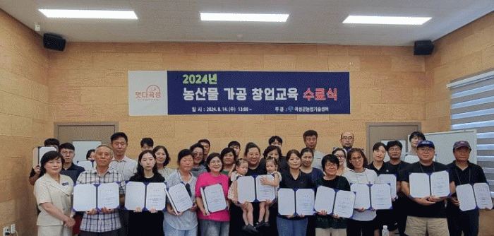 곡성군농업기술센터 관계자는 “이번 교육은 농산물 가공 상품개발 절차와 식품 안전관리 등 식품 가공 시 필수로 알아야 하는 전문적인 과정으로 진행됐다”며, “수료생들이 농식품 가공에 대한 전문성을 강화하고 우리 군 농산물 가공창업의 선두 주자가 돼 농외소득 창출을 이루길 기대한다”고 말했다.