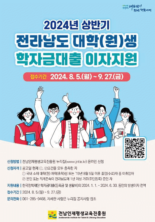 대학생 학자금 대출이자 지원사업은 지역 대학생의 경제적 부담을 완화하고 안정적 학습 환경을 조성하기 위해 전남도와 22개 시군이 재원을 마련해 추진한다.