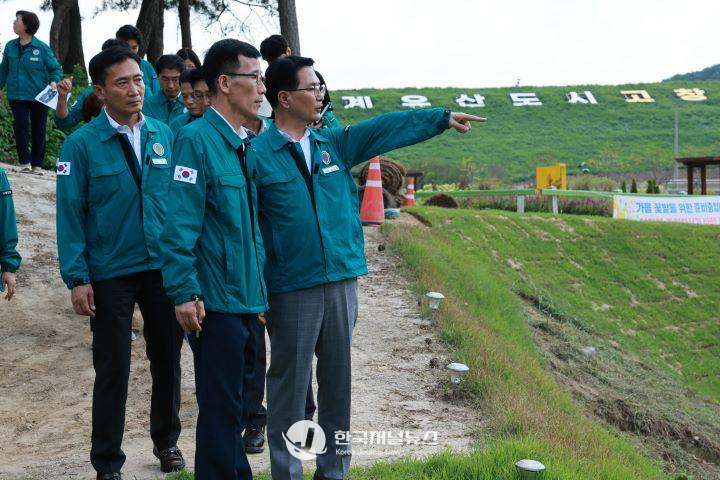 또한 침수피해 등 재해위험 요인을 사전에 정비하기 위한 사업인 노동천 지방하천 정비사업(136억원)과 만화 자연재해 위험개선지구 정비사업(98억원) 현장을 찾아 현장 관계자들을 격려하고 공사현장을 꼼꼼히 점검했다. 두 사업 모두 25년 12월 준공을 목표로 공사가 진행되고 있다.