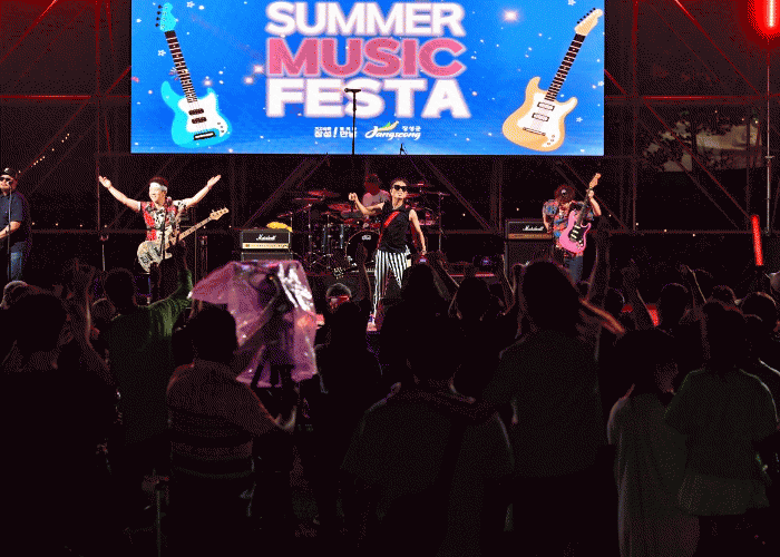 ‘썸머 뮤직 페스타’가 인기를 끈 비결은 물놀이와 공연을 한곳에서 즐긴다는 데 있다. 음악분수를 중심으로 대형 워터 슬라이드, 풀장 등이 설치돼 낮에는 물놀이를, 저녁에는 공연을 만끽할 수 있었다.