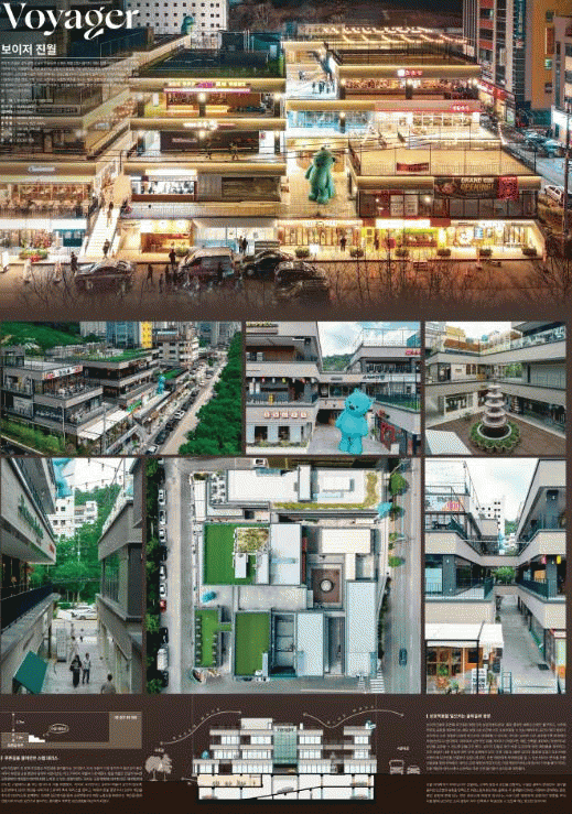 비주거부문 최우수작에 선정된 남구 진월동 ‘보이저 진월’은 푸른길과 인접한 대지의 특성을 활용하고 도보 유동을 통한 접근성을 고려한 열린 배치와 건물 내부공간에 있는 상업시설들을 서로 마주 보도록 배치, 상호 작용한 점이 인상적이라는 평을 받았다.
