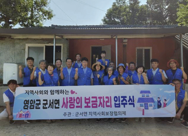 이날 입주식은 차상위계층 가구의 누수와 곰팡이로 뒤덮인 낡은 흙집을 새 단장하고 여는 집들이 행사. 군서면지사협은 올해 4월 정기회의에서 이 가정의 주거환경개선사업을 결정했다.