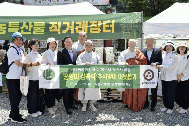 특히 이날 행사에는 방생 법회의 취지를 살려 추석을 앞두고 불우이웃을 위한 ‘공양미 300석’ 기탁식도 함께 진행했다. 봉은사와 도선사 신도들이 200석, 담양쌀조합공동법인(담양통합 RPC)에서 100석을 기부했으며, 기탁된 쌀은 관내 어려운 이웃들에게 추석 전 배부할 계획이다.
