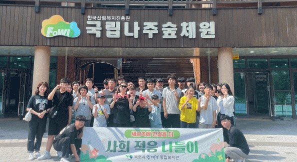 이번 사회적응체험활동은 폭염으로 몸과 마음이 지친 발달장애학생들이 숲체원에서 다양한 활동을 체험하면서 스트레스 해소와 심리적 안정감을 키워주고, 또래 관계 속에서 타인을 배려하고 사회성과 유대감을 형성하기 위해 마련됐다.