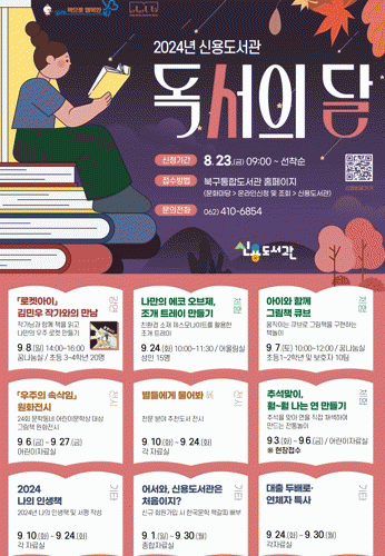 또한 운암도서관은 ▲우리 가족 독서 노트 만들기 ▲회원증 지갑 만들기 ▲예술가 일대기 도서 전시 등 8개 프로그램, 양산도서관은 ▲‘떨어져라, 떨어져, 찰딱폰!’ 저자 함지슬 작가와의 만남 ▲떡 모양 입욕제 만들기 ▲가을 여행 도서 전시 등 8개 프로그램이 운영된다.