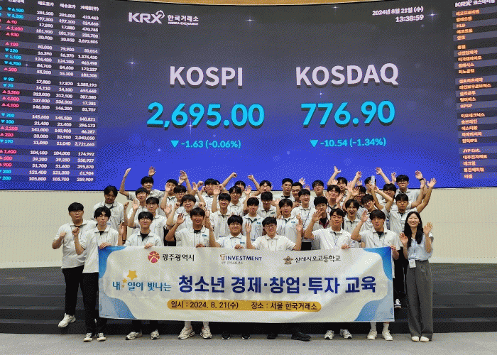 광주광역시는 21일 서울 한국거래소 전시관 등에서 광주살레시오고 2학년 학생 40명이 참석한 가운데 ‘청소년 경제·창업·투자 교육’을 열고 전문가 특강과 현장체험 프로그램을 진행했다.