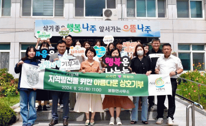 21일 나주시에 따르면 전날 봉황면과 담양군 소속 직원들이 상호 지역에 고향사랑 교차 기부를 했다고 21일 밝혔다.