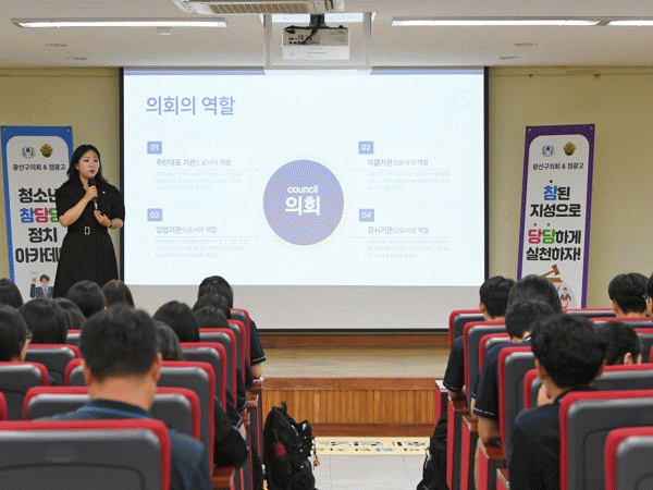 김명수 의장은 “참당당 아카데미는 청소년들이 정치를 쉽고 친근하게 이해할 수 있도록 돕기 위해 기획된 것”이라며 “아이들이 미래 사회를 당당하게 설계해 나가는 민주 시민이자 사회인으로 올바르게 성장할 수 있도록 의회 차원에서 폭넓은 기회를 마련하기 위해 노력하겠다”고 전했다.